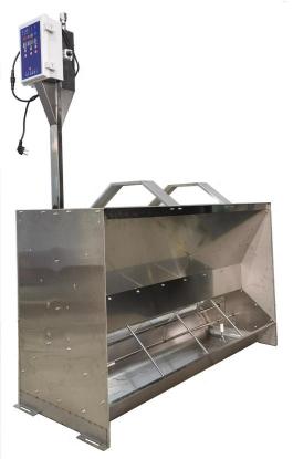 成都肇元公司推出的不锈钢粥料饲喂机PSF-2003型如下图,一套最多能喂60头育肥猪,下料精度5%以内,2年使用零故障。