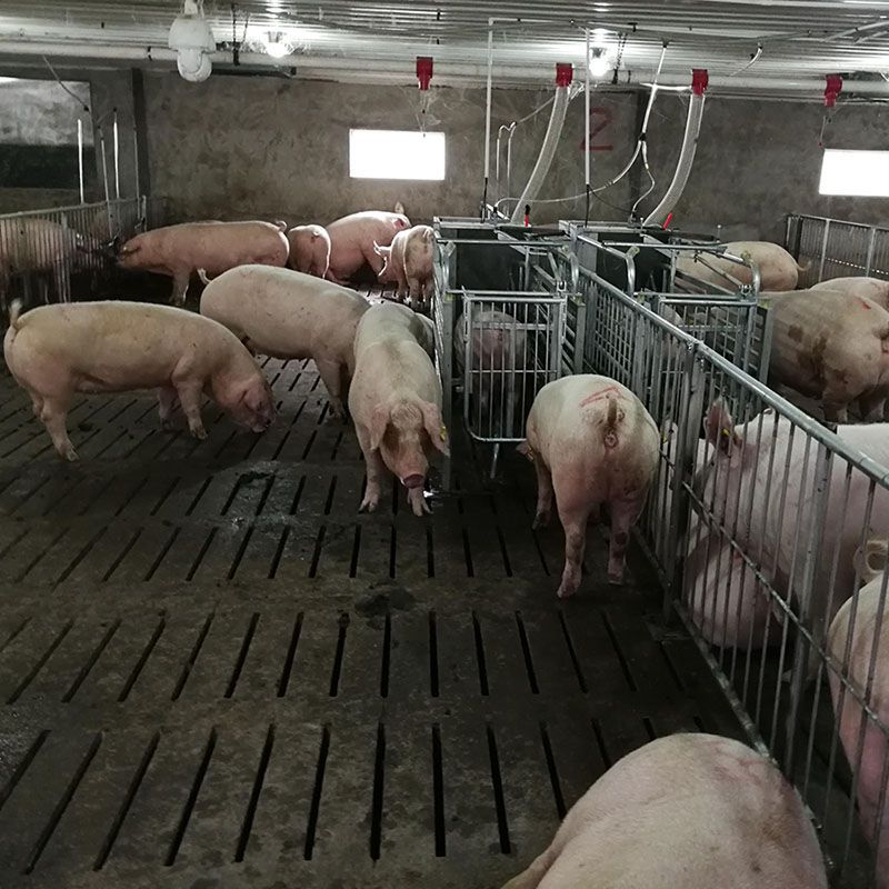 把母猪从定位栏中解放出来顺其自然放养增加运动量,自身免疫力得到很大提高。母猪进入通道后拱动前门后门自动关闭,凭电子耳标得到日限制饲喂量在无干扰条件下从容采食,妊娠母猪饲喂实现无人化,上产床后基本上无需人工助产就能顺产,妊娠阶段运动模式饲喂的母猪产后脯乳期日采食力比限位栏饲喂的母猪大500g-1000g。