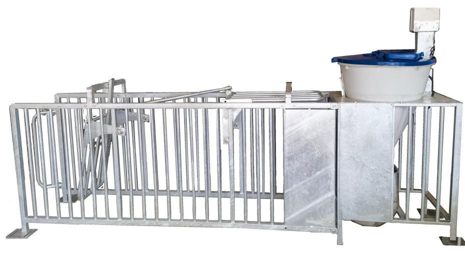 EFS-1002能方便后退推出,避免了两头前后猪拱门造成的相互伤害,更重要的是能采用前门门双开模式让猪自己训练自己学会在饲喂站采食,避免了人工训猪学会拱开前门的麻烦 。