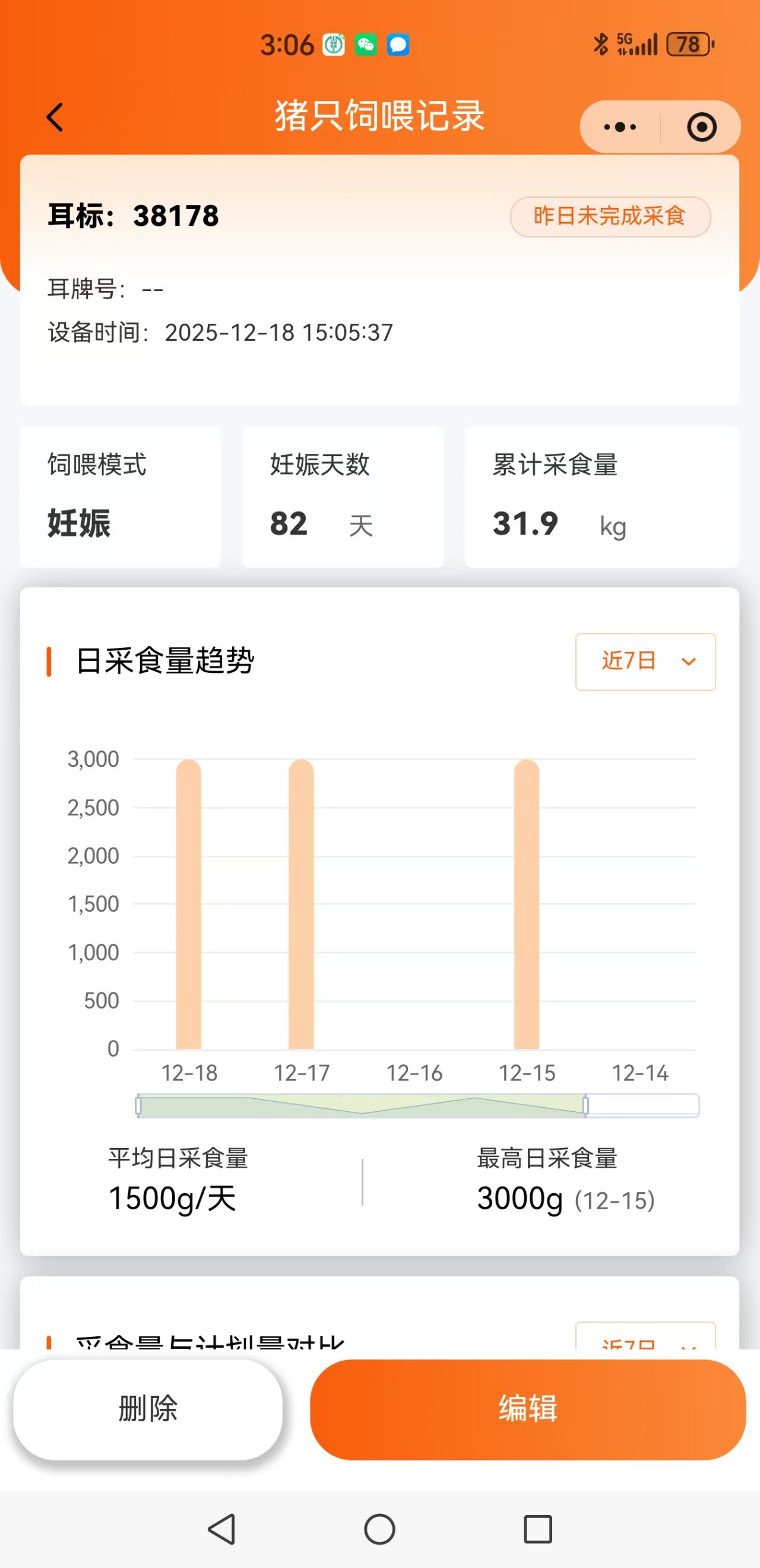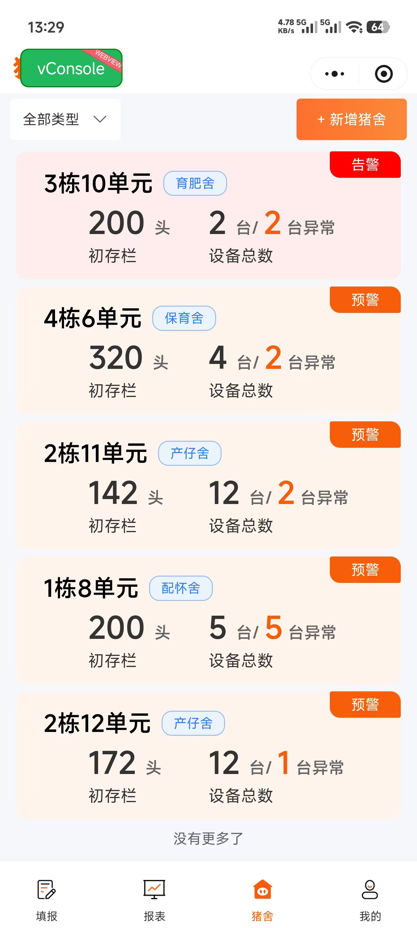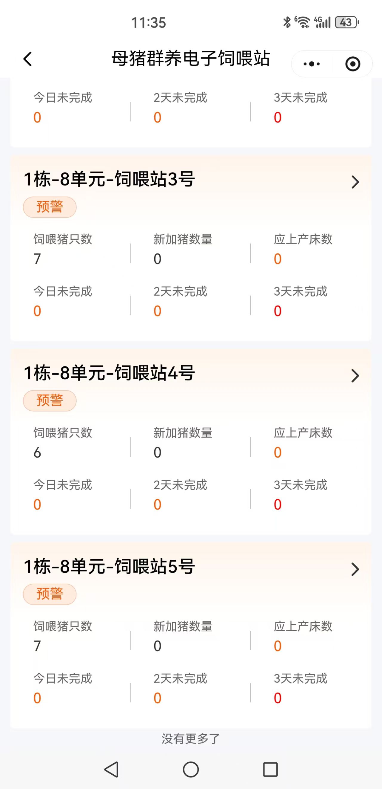 物联网平台自动记录每一头限位栏上、妊娠群养舍、产床上母猪个体采食量,自动记录保育舍、育肥舍猪群每圈采食量,对采食不足猪发出疾病报警并定位。用户可用手机远查看: